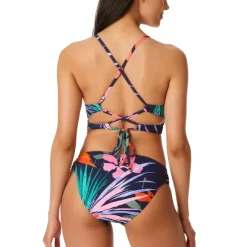 New 🤩 Jessica Simpson 👩 Women’s Surfers Paradise Cropped Cami 👙 Bikini Top Mood Multi 😀