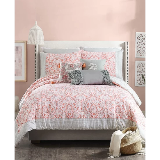 Crafted of all cotton grey fabric this Jessica Simpson decorative pillow features fun, bohemian fringe.ย