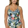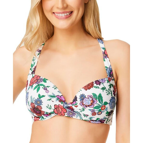 Floral print and twisted fabric brings eye-catching design to your waterside wardrobe while the built in cups and adjustable tie straps keep you supported as you splash then relax in this Jessica Simpson bikini top.