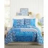 Inspired by vintage silk scarves the Jessica Simpson Lago Quilt features pieced cotton fabrics with bohemian, feminine prints in shades of dusty grey and coral.ย