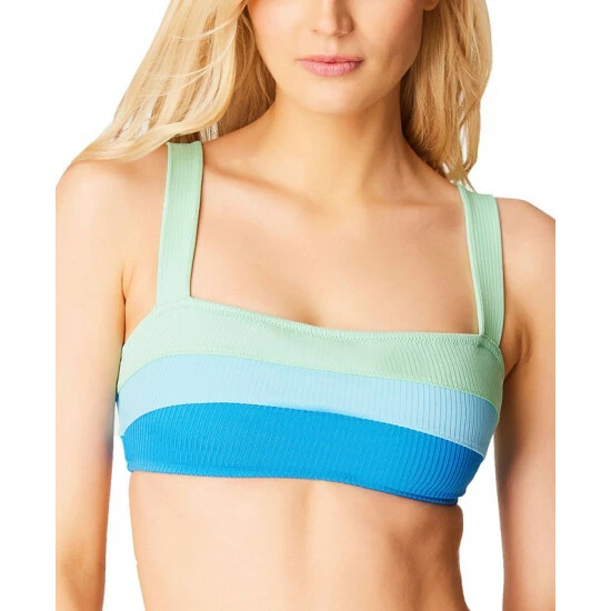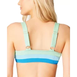 Tie back closure adjusts to fit your figure while the striped fabric draws attention up towards your face with this bikini top from Jessica Simpson
