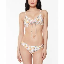 Floral prints adorn this bikini from Jessica Simpson with its flattering ruching at the front of the bikini top and sides of the bottom.