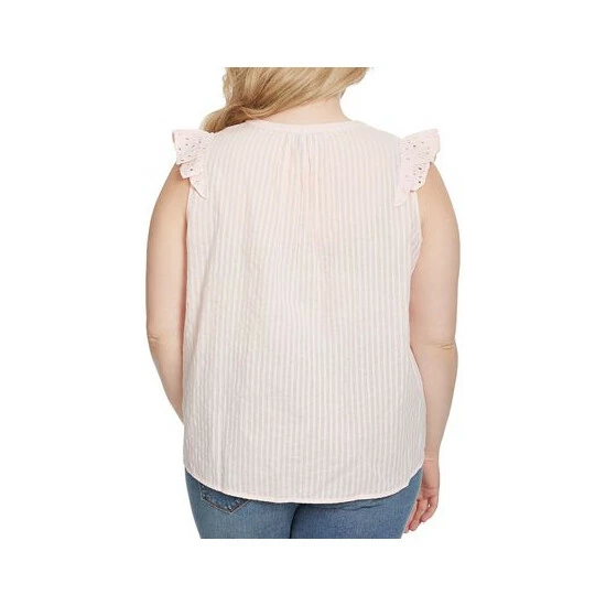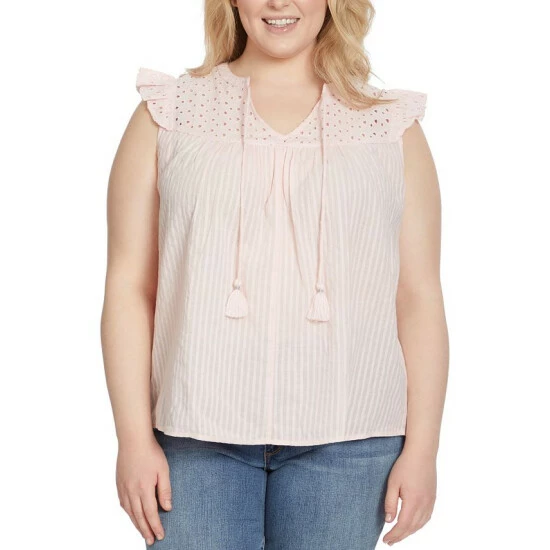Eyelet trim details and front ties sweeten this pretty plus size cotton boho top from Jessica Simpson.