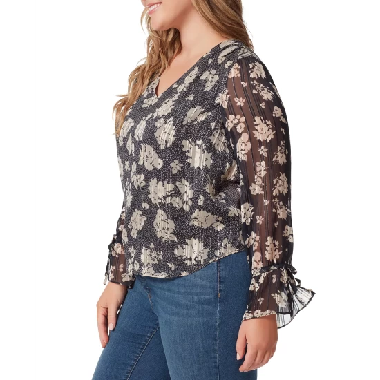 Jessica Simpson’s plus size Aurora top is a printed-to-perfection pick designed with gorgeous flare sleeves.