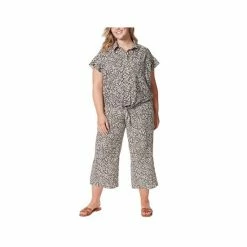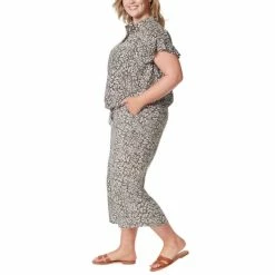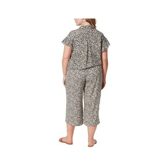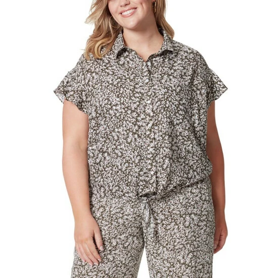 Jessica Simpson stylishly relaxes a classic plus size button-front shirt with flirty flutter sleeves and a trendy tie-waist.