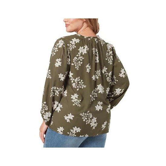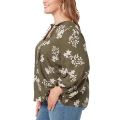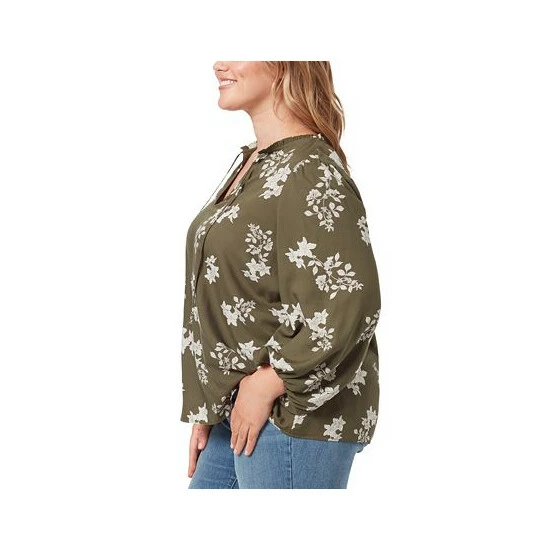 Delicate tie details add the right finishing touches to this printed plus size peasant top from Jessica Simpson.
