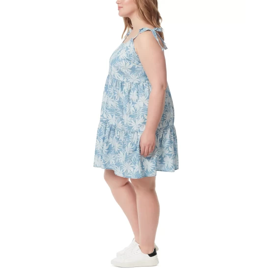Fun and flowy, this plus size dress from Jessica Simpson hits all the right style notes with its pretty print, shirred waistline and tiered skirt.