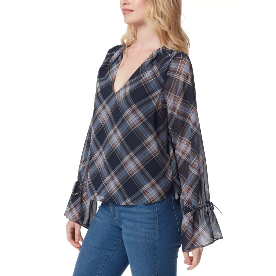 Be ready for plaid season in this cute blouse by Jessica Simpson, finished with a flowing French cuff for an ultra-chic look.