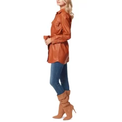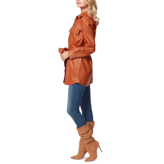Turn heads in this sleek and stylish shacket by Jessica Simpson; designed with a leather-look finish this piece can be paired with jeans for an effortlessly striking look.