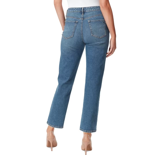 Jessica Simpson gives classic straight-leg jeans a laidback vibe with the addition of a raw hem, making the high rise design a cool pick for relaxed days.