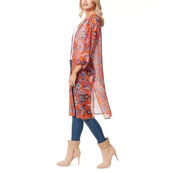 Add the perfect finishing touch to your look with this boho-chic printed duster from Jessica Simpson, a breezy open-front design framed by relaxed 3/4-length sleeves.